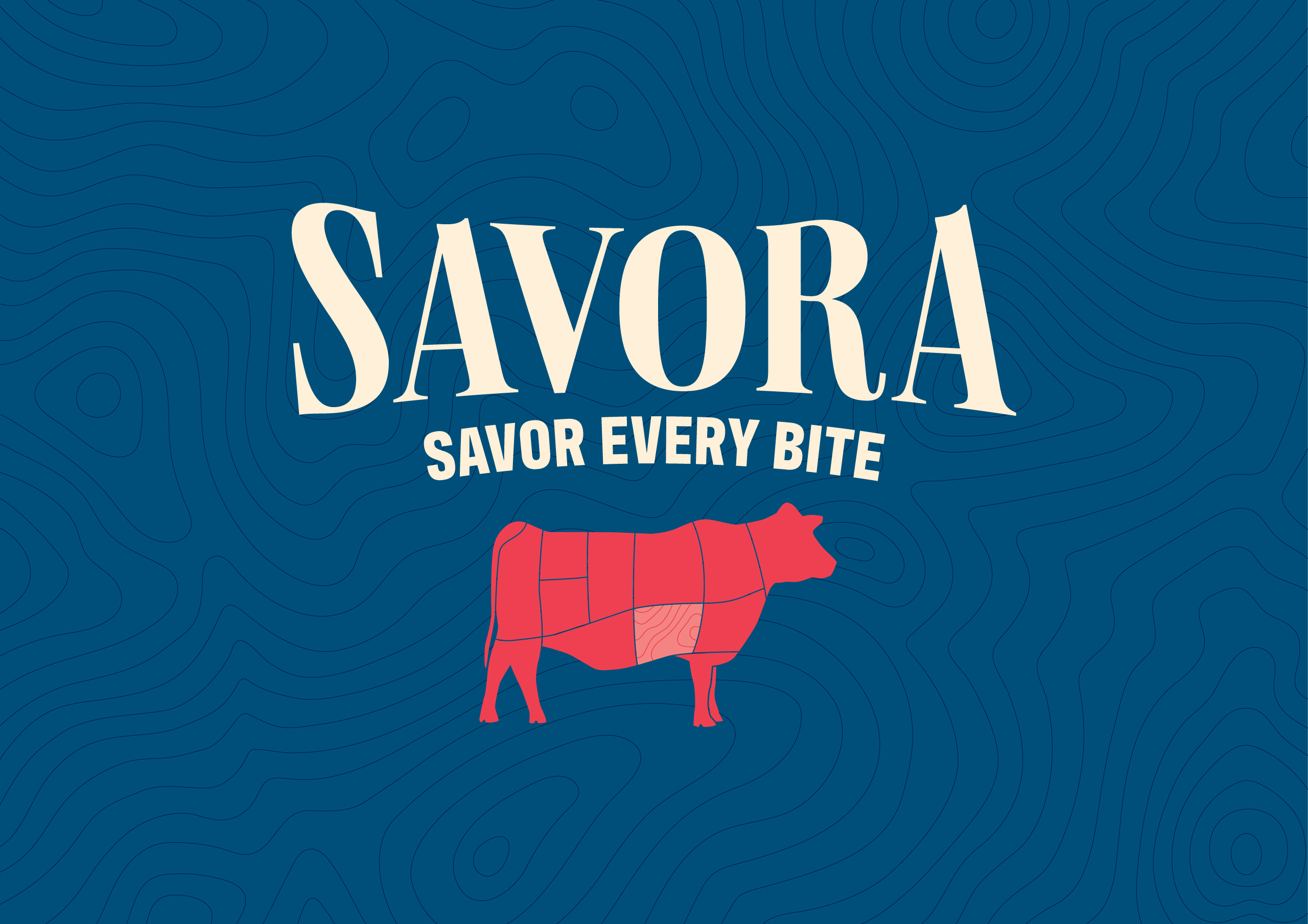 The project began with naming. We narrowed it down to two finalists—Delica and Delicate—and almost settled on Delica, a blend of “delight, delicious, delicate,” meant to capture the essence of imported meat products. However, after legal checks, the name couldn’t be trademarked. So we moved to the next viable option: Savora. Inspired by the word savor—to taste and enjoy—it was refined with the added vowel “a” to give the name a sense of completeness and freshness. Along with it came the tagline “Savor every bite,” emphasizing the joy of flavor and quality in every piece.